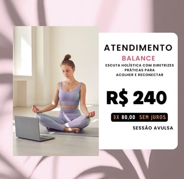 Atendimento de 1 hora e 50 minutos - voltados a Escuta e compartilhamento de diretrizes Holísticas de forma leve e acolhedora.